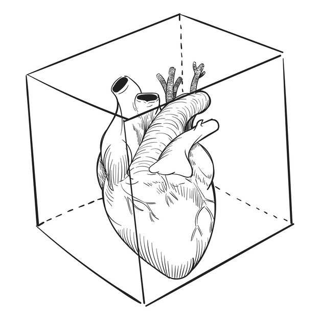 Учитывайте расположение крупных сосудов, идущих от органа. Они проходят по направлению к шее и ушам. Отметьте контуры, что поможет визуализировать расположение, делая акцент на левой стороне груди.